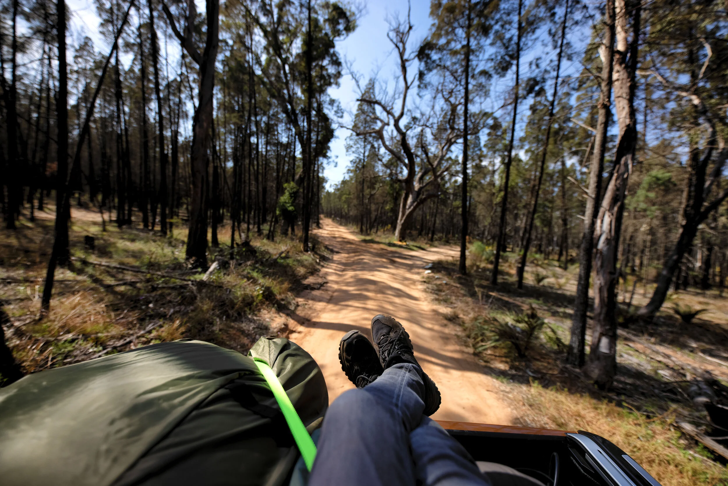 Joe has a block of land about 4-5 hours north of Sydney which is our first stop. It’s a quiet patch of woodland in the middle of nowhere, subdivided into getaway plots for those who want to escape the city, and those who already have.